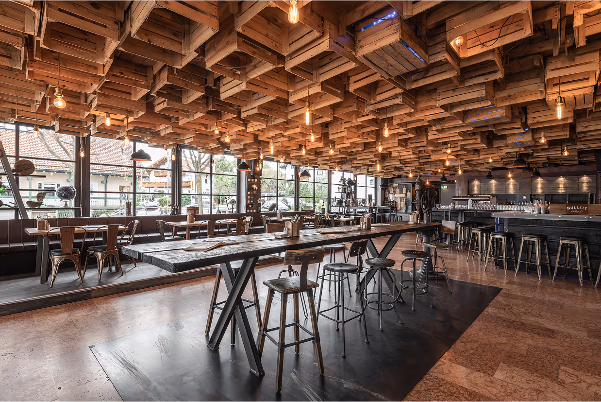 Die Teeküche der Brennerei Freiham erhielt individuell auf den Raum abgestimmtes und eigens angefertigtes neues Mobiliar in Form einer hochwertigen Sitzgruppe, bestehend aus einem großen Esstisch und 6 zugehörigen Stühlen.